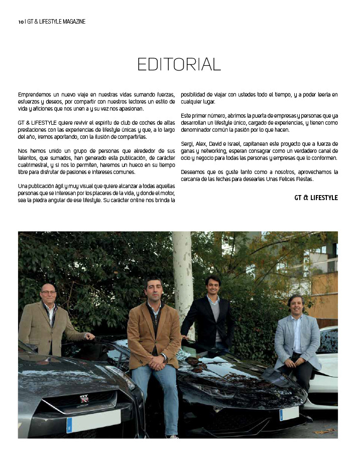 Maquetación del número Piloto de la publicación GT&LIFESTYLE Magazine.