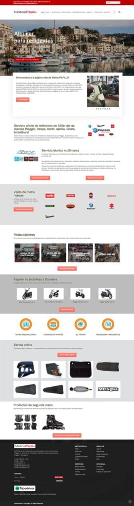 Creación de la página web de Motos Pepllu, que se dedica a la reparación, restauración, diagnosis, y alquiler y venta de motocicletas y bicicletas en las Islas Baleares.